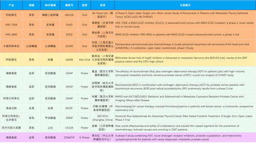 在胸腺上皮肿瘤、头颈鳞癌、肉瘤、前列腺癌、甲状腺癌等其他多个疾病领域,卡瑞利珠单抗、阿帕替尼、瑞维鲁胺、阿得贝利单抗、法米替尼、HRS-7058、HRS-4642等抗肿瘤创新药相关研究一共入选了4项口头报告、1项简短口头报告、4项壁报、1项电子壁报,彰显了BBIN宝盈医药强大的研发实力。此外,海曲泊帕和昂丹司琼口溶膜分别在防治化疗导致的血小板减少和恶心呕吐方面各有1项研究入选壁报。